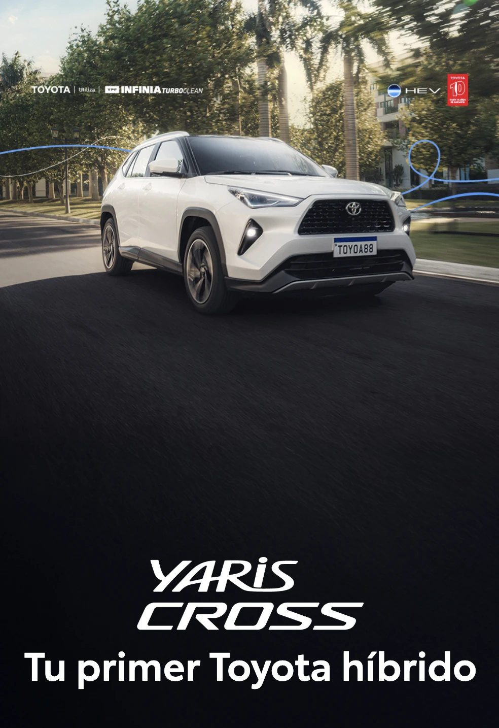 El sistema híbrido auto recargable de Yaris Cross está compuesto por dos motores (naftero + eléctrico) que trabajan conjuntamente para brindar una experiencia de conducción única. La batería se recarga automáticamente cuando el vehículo desacelera o frena, sin necesidad de enchufarse a una fuente de energía externa.