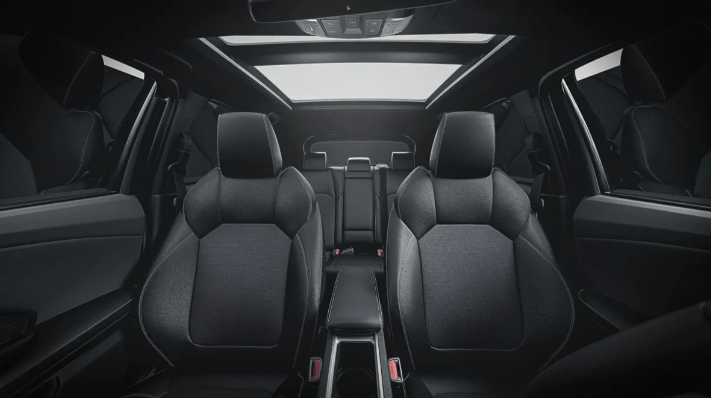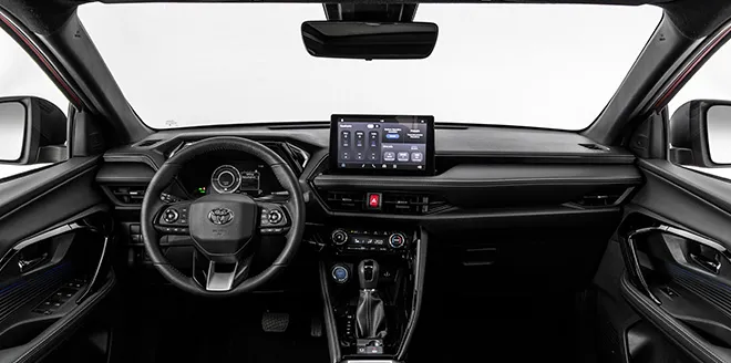 Bajo una arquitectura que maximiza la sensación de amplitud, el diseño interior del Yaris Cross se destaca por el cuidado en los detalles y su funcionalidad: todo se encuentra dispuesto al alcance del conductor. Los asientos, diseñados para ofrecer una sensación de bienestar, varían según la versión: las XLI y XEI con tapizado en tela de color negro, mientras que la versión SEG presenta tapizado en cuero ecológico microperforado, también de color negro.